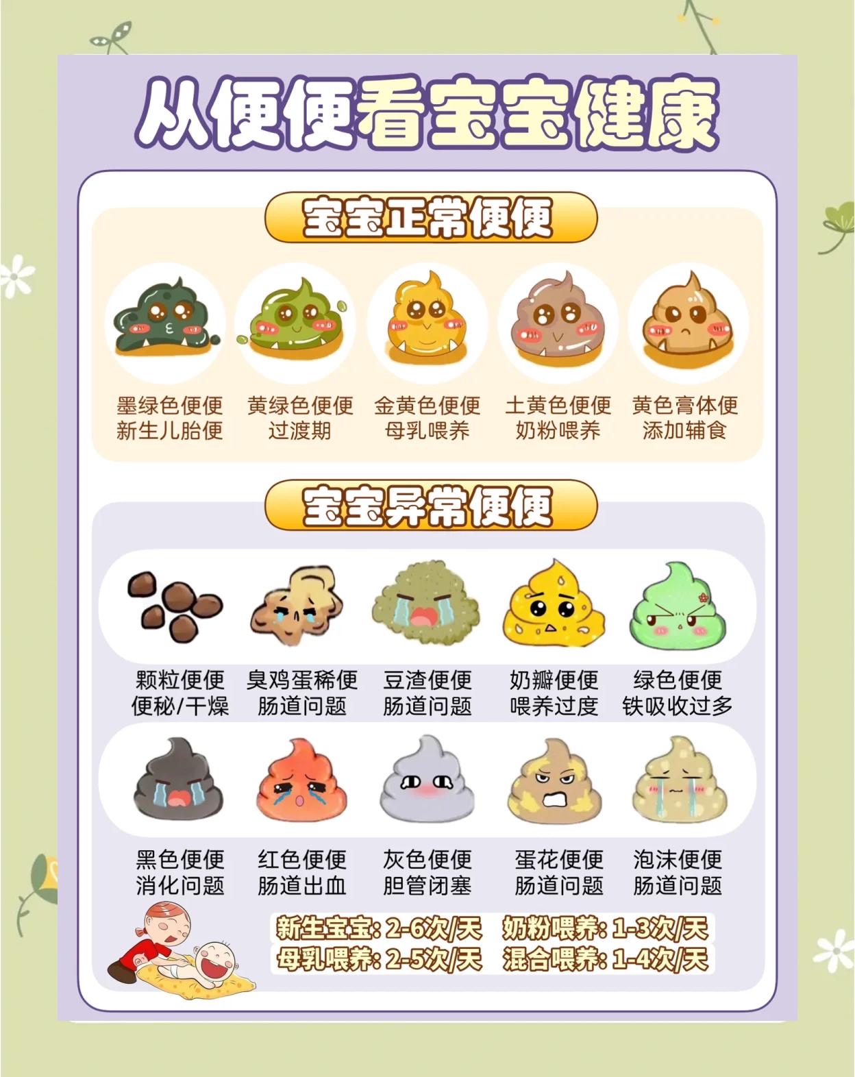 - 绿色便便:这通常与消化有关。如果是奶粉喂养,可以考虑是否需要更换奶粉。同时,可以给宝宝的小肚子做个温敷,每次15分钟,每天3-5次,帮助缓解。
