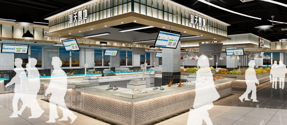 网红元素(霓虹灯/绿植墙)+ 烟火气(现杀活鱼摊)+ 智能设备(扫码溯源) = 年轻人抢着发朋友圈!