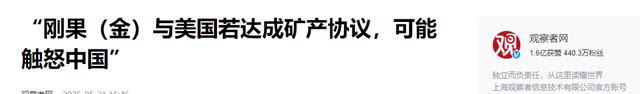 观察者网:“刚果(金)与美国若达成矿产协议,可能触怒中国” 2025-05-21