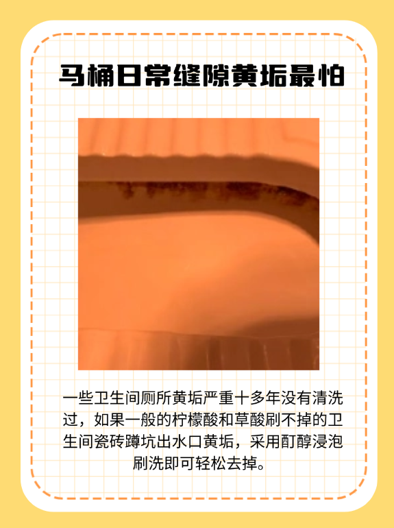 卫生死角残留:马桶凹槽、缝隙等区域若未彻底清洁,污垢会逐渐积累变黄。