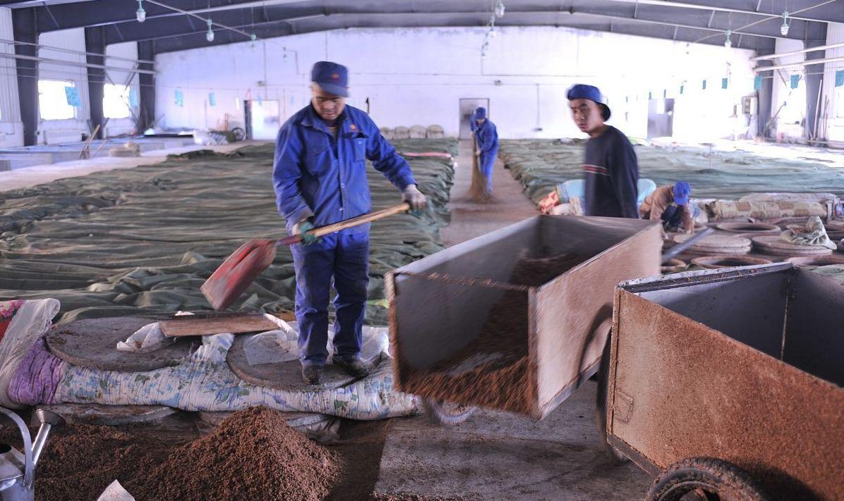 这时候我们还得根据有机肥的配方来调配,将粉碎后的牛粪混合物与其他无机肥料和添加剂充分混合均匀。
