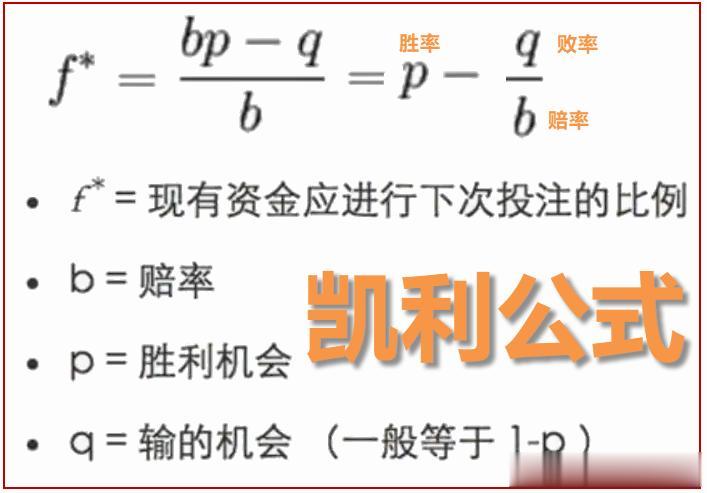 凯利公式最早是为计算D场里的投机行为使用的,现在也被用在股票期货等方面。这个公式由p胜率,q败率和b赔率三个参数构成,其中,q=1-p,所以只剩下两个参数:p胜率和b赔率.