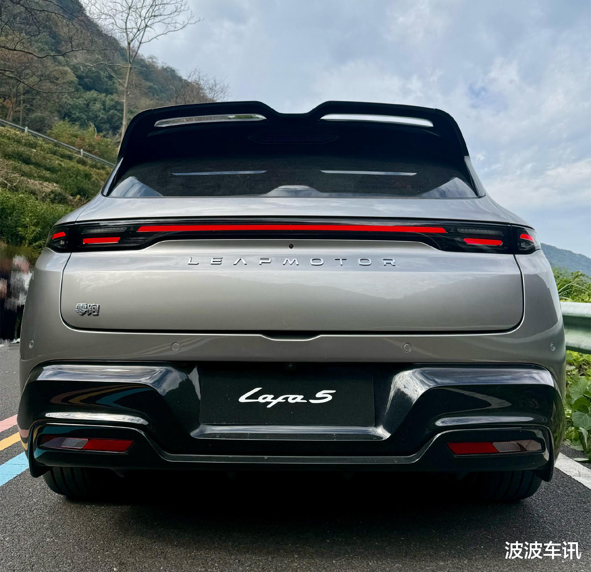 在车的尾部,零跑Lafa5 Ultra采用的是很有层次感效果的设计,尾部的顶端采用了极其凶悍的扰流板。车的尾部中间采用的是饱满的车身,它还有贯穿式的尾灯组的设计,最底端则采用了十分凶悍的高亮黑色的包围,层次感很强。有这么凶悍的外观,再加上它还有可能搭载双电机,这样的话高尔夫R还真在它身上捞不到好处。此外,零跑的高管曹力还表示,Lafa5 Ultra是一款跑山非常棒的车型,更值得年轻消费者看了。