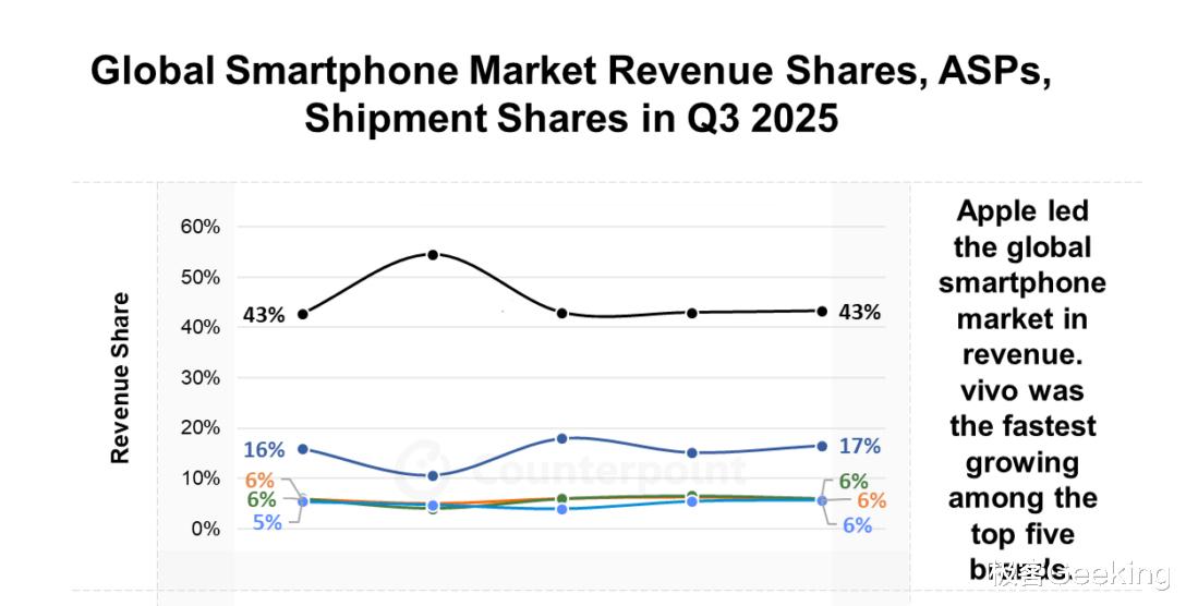 同时前五大品牌都实现了营收增长,其中 vivo 以 12% 的同比增长率成为增长最快的品牌。