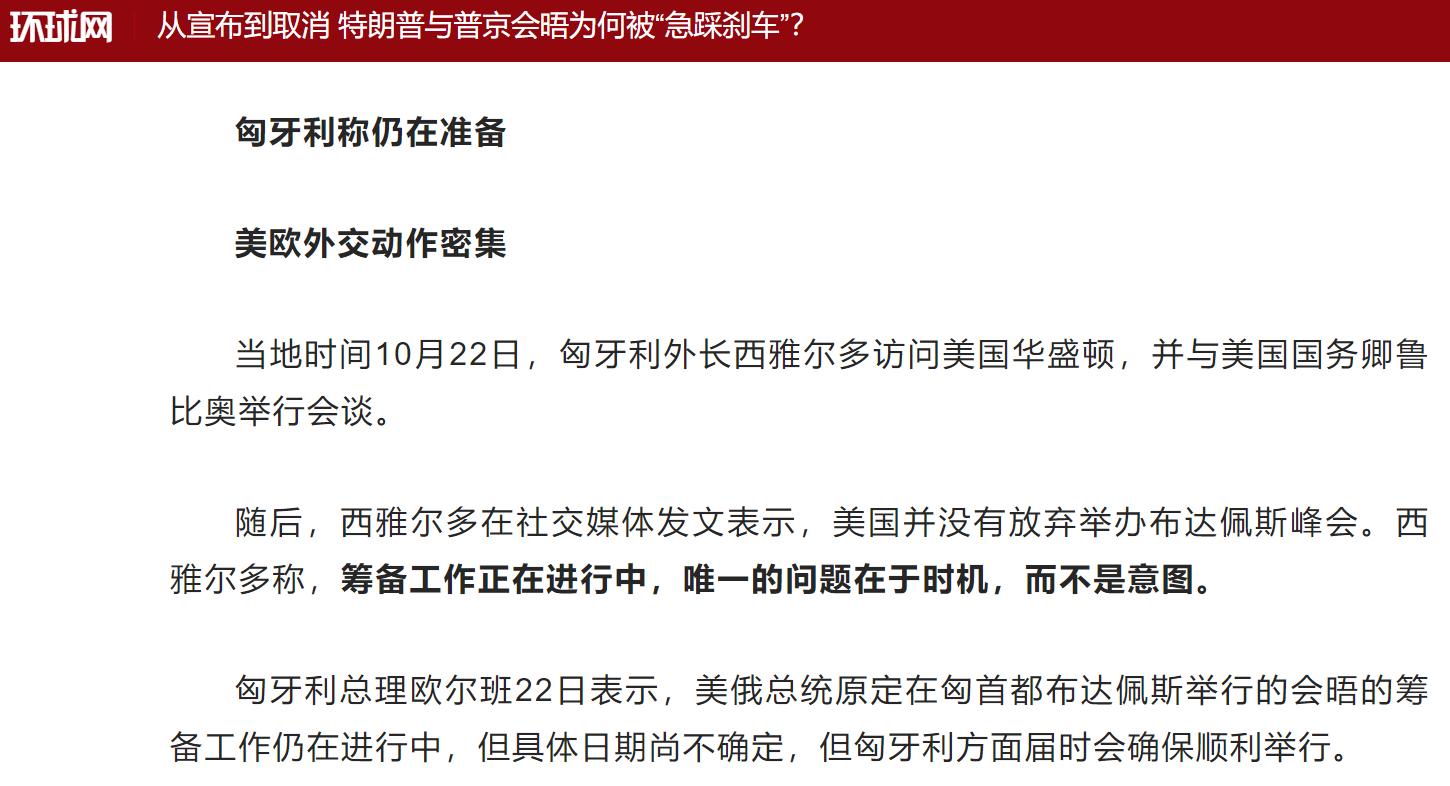 尽管特朗普称取消了与普京的会面,但是按照举办方匈牙利的说法,美国并未放弃,只不过时机未到。