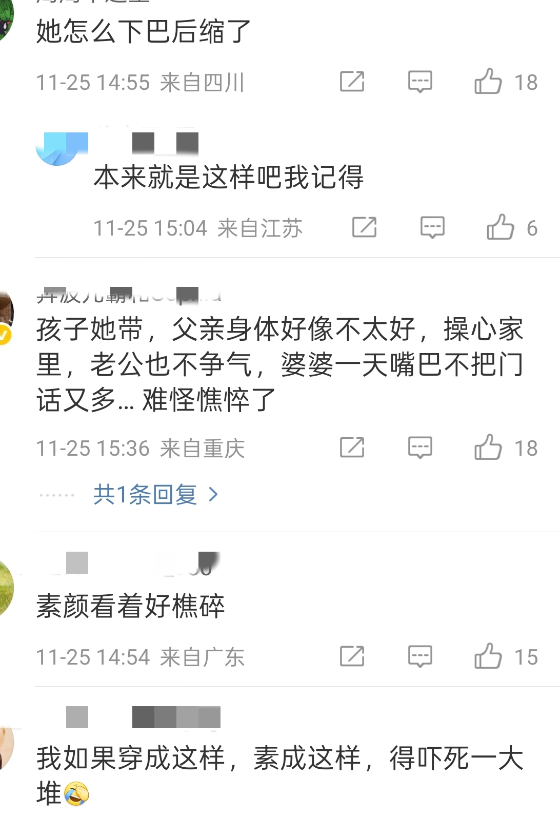 但这次露面,她瘦的脸上的肉都凹陷了进去,用面黄肌瘦来形容也不为过。