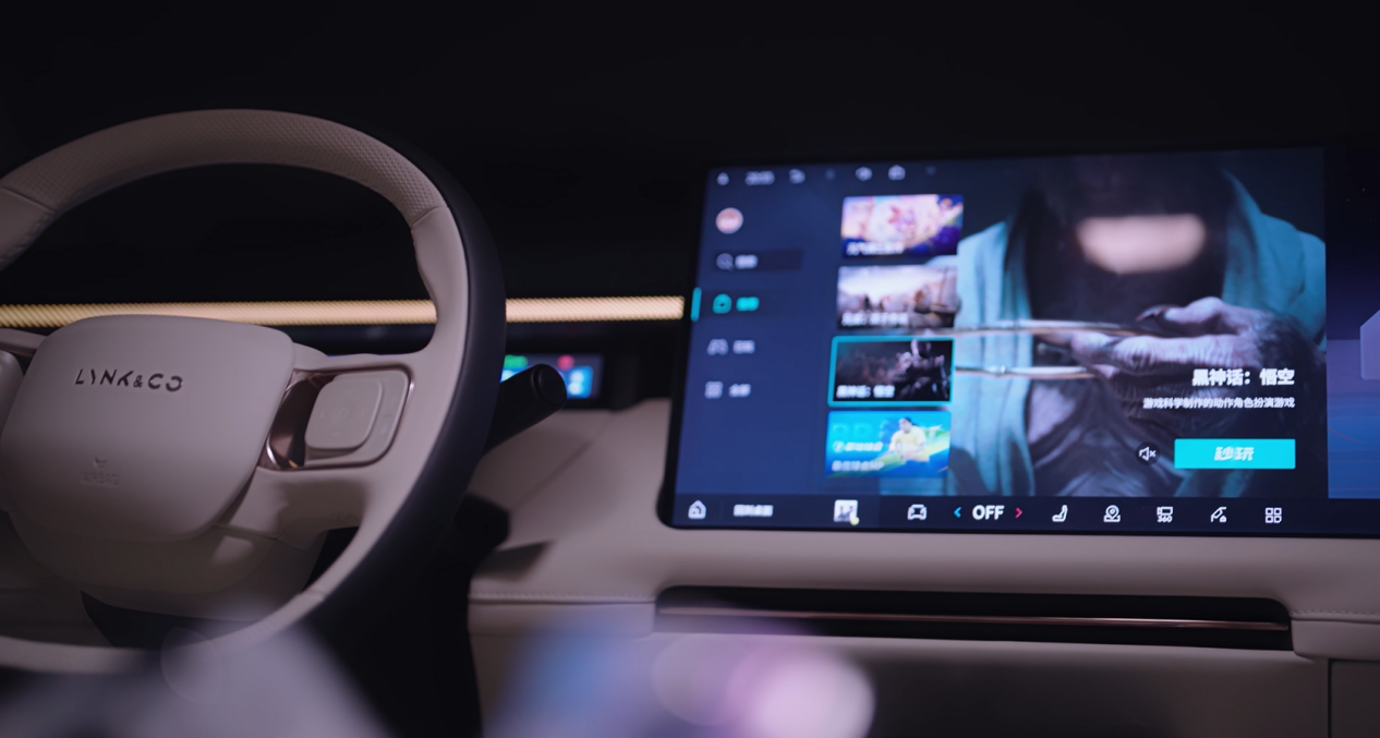 车机系统Lynk Flyme Auto操作逻辑清晰,语音大模型响应迅速,支持多屏交互与场景切换。30英寸6K双巨幕可分屏运行,主驾导航、副驾娱乐、后排影音互不干扰。搭配哈曼卡顿31扬音响、三区空调、车载冰箱与隐私遮阳帘,为整车构建出智能与豪华并行的舱内体验。