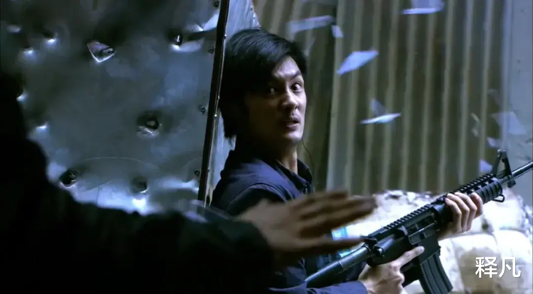 最终,阿豪扔出衣服,他选择最习惯的移动射击杀敌,正邪双雄一起对枪倒地,火光冲天与壮烈并存,这种暴力美学仿佛重回《英雄本色2》!