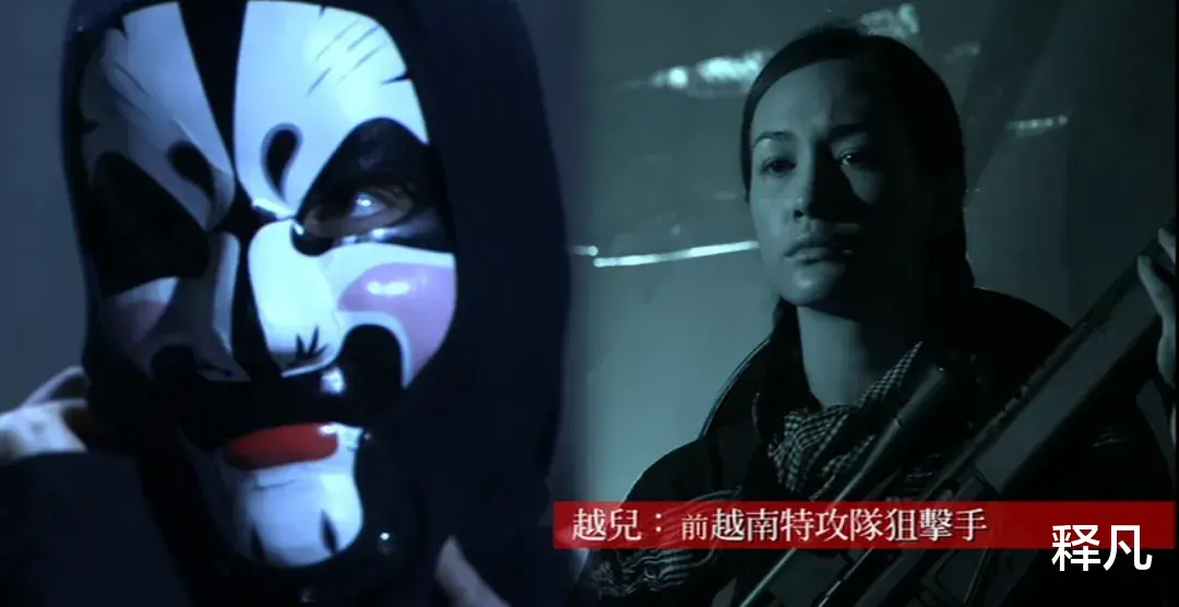 这伙美韩越前特工组成恐怖分子,默契配合杀光人动完毕,他们果断戴上京剧脸谱的面具,这场偷袭屠杀很残忍,却精准专业,雷霆万钧!