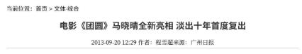 广州日报《电影《团圆》马晓晴全新亮相 淡出十年首度复出》
