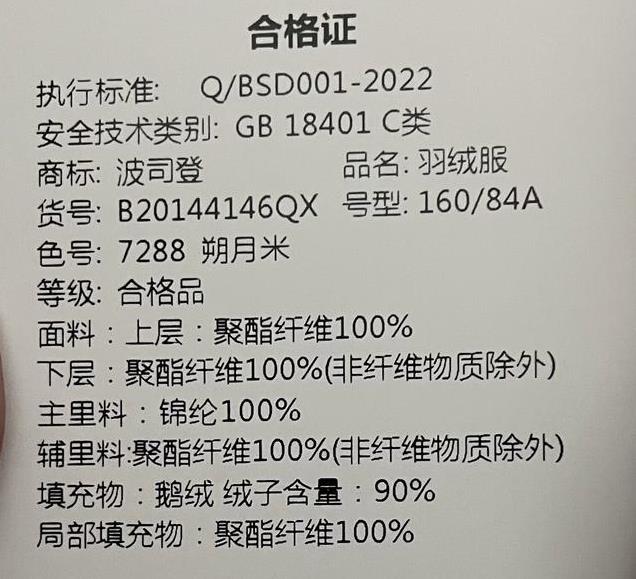 我们在购买羽绒服时,需要注意到羽绒服的标签上应该有下面这些字: