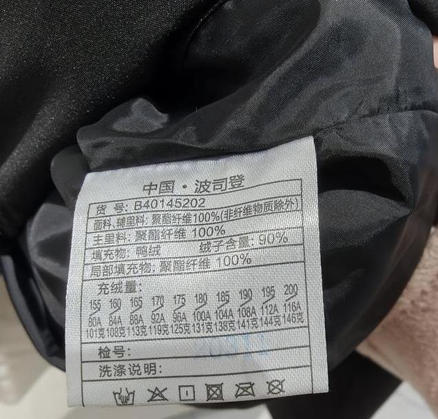 首先就是标签,我们买羽绒服时,衣服上都会有标签,上边清清楚楚记录着该羽绒服的含绒量比例。