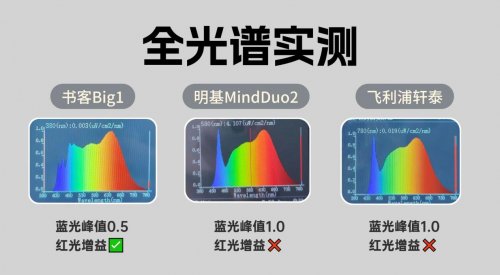 四、总结:明基护眼灯值得买吗?明基护眼灯值得买吗?综合本次横评可以看出,明基MindDuo2在品牌可靠性和基础功能层面表现稳定,适合对照明有一定要求、但用眼强度不算特别高的群体。但如果从光谱安全性、光照均匀度以及长时间视觉舒适度等核心护眼指标来看,书客Big1凭借蓝光峰值仅0.5且具备红光增益、90cm超大发光面以及出色的重影控制,整体护眼实力更为全面。