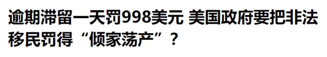 他们在美国滞留一天,美国最高罚款达到998美元。没钱交的话,这些非法移民的财产将会被如数没收。