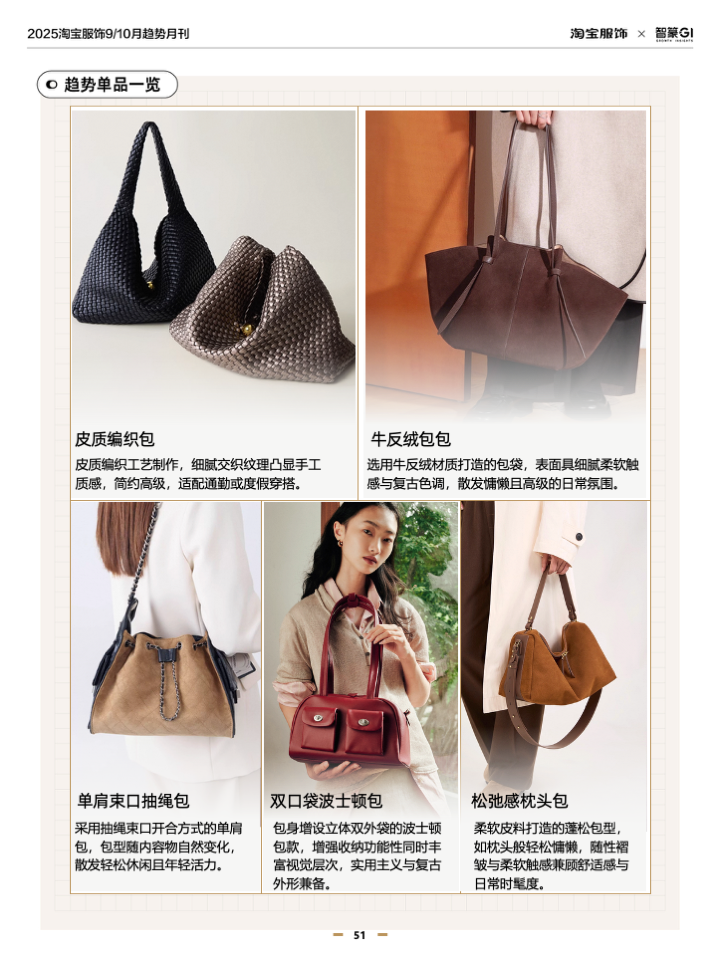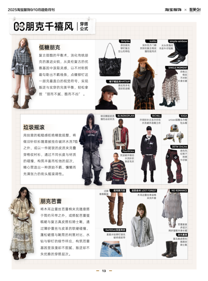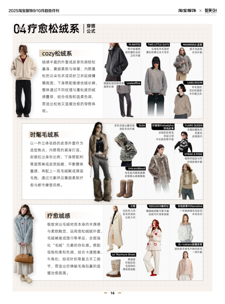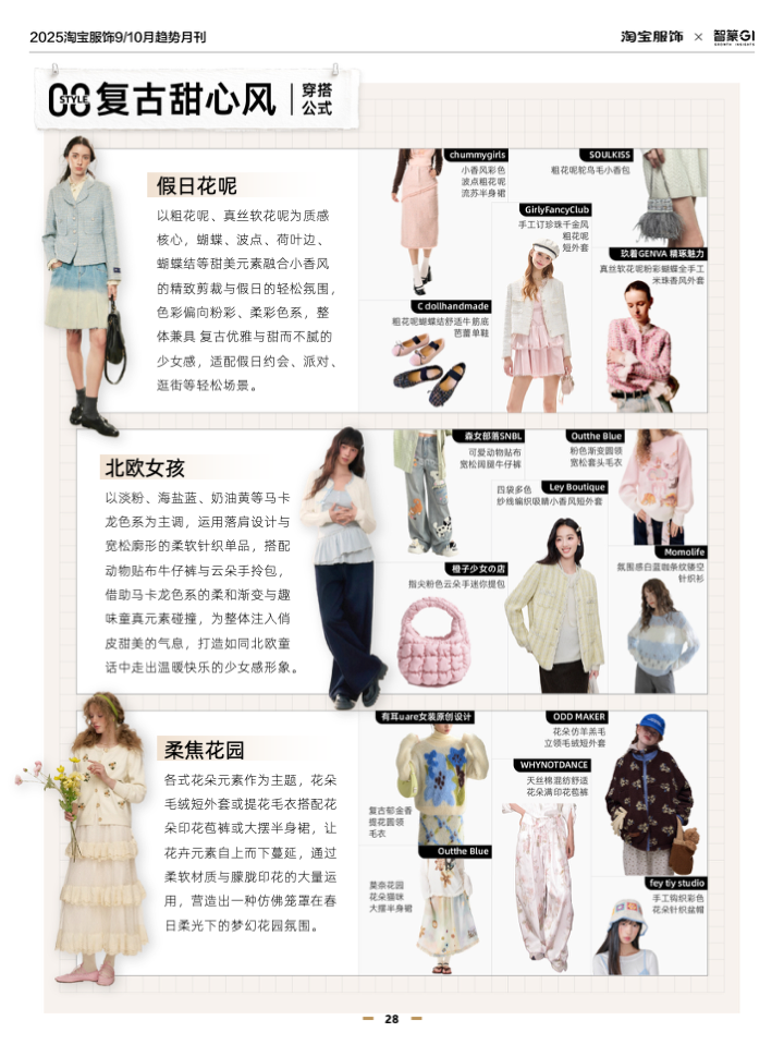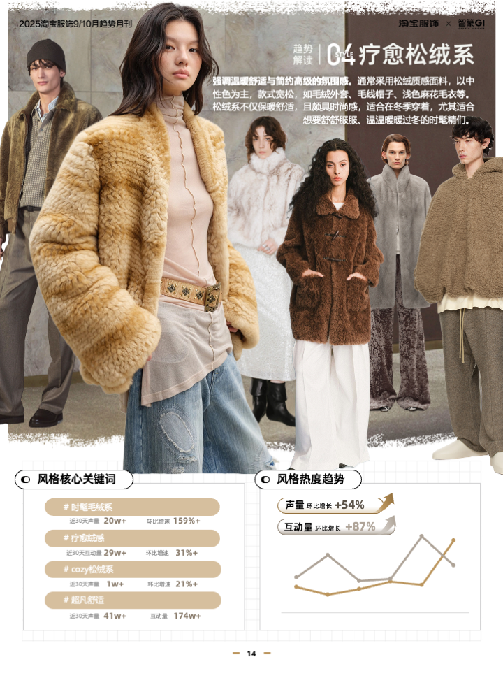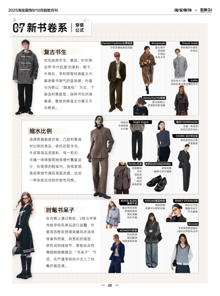从职场干练到旷野自由,定义秋冬穿搭美学新范式金秋时节的9/10月,穿搭风格逐渐向质感与层次感靠拢,选择更加多元;其中,职场日常穿搭以简约设计为主流,如时髦得体风、新书卷系;乡野复古风、东欧游牧风和疗愈松绒系中的自然舒适元素,为秋日穿搭注入治愈时尚感;此外,新极繁主义、复古甜心风和朋克千禧风凭借对复杂美学的探索与怀旧元素的融合,为个性化表达提供了更多选择。