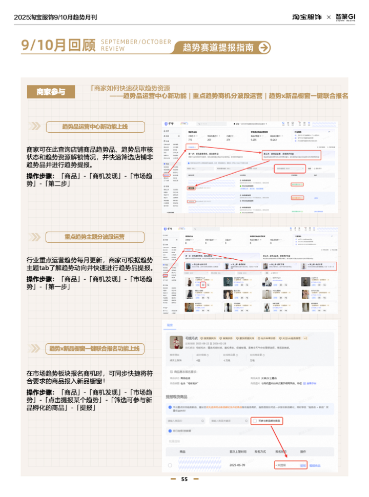 新品联合报名:趋势x新品橱窗一键提报,同步参与流量扶持与穿搭频道推荐