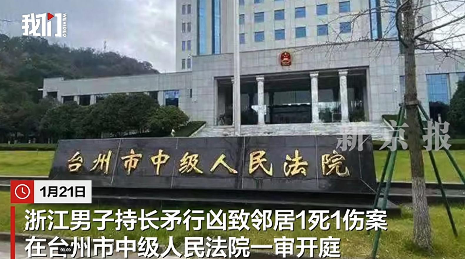 1月21日,浙江男子持长矛行凶致邻居1死1伤案,在台州市中级人民法院一审开庭。