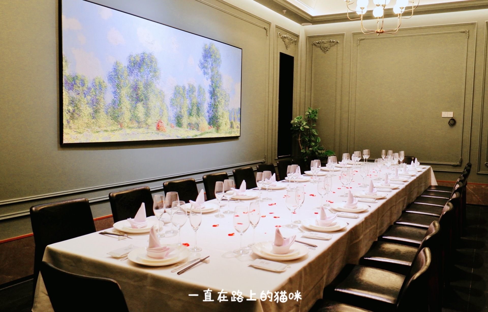 有一间长餐桌可坐20人,特别适合公司团建或者举办小宴会,整个餐厅的感觉都很有艺术感,在这里吃饭是一种享受。