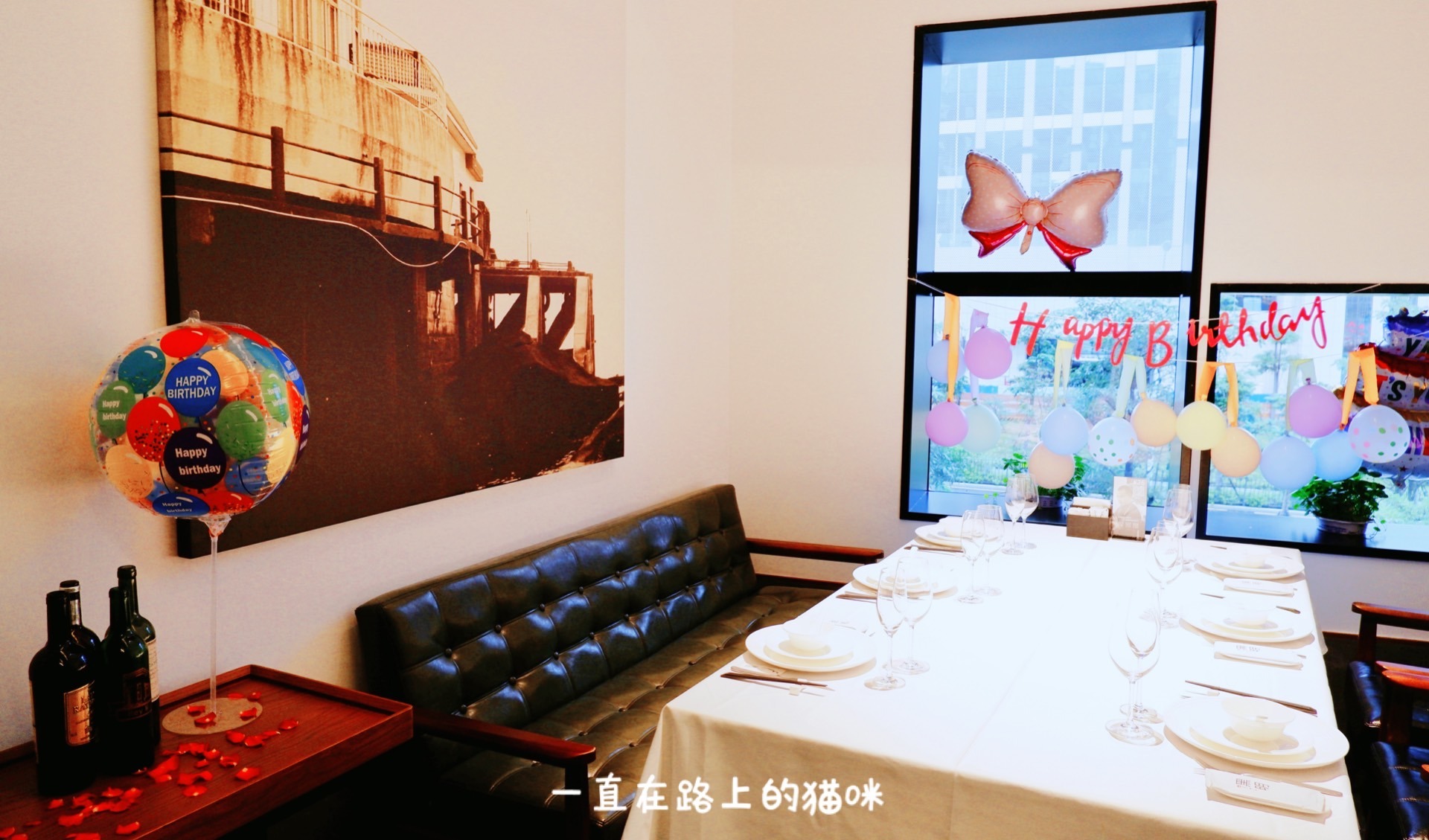 包间有大有小,每一间装修的都很用心,部分包间还有泡茶桌,符合闽南人餐前餐后泡茶话仙的习惯。我们这一间提前做了生日布置,桌上撒的玫瑰花瓣,窗上的气球鲜花、冰镇好的酒等,真的好有仪式感。