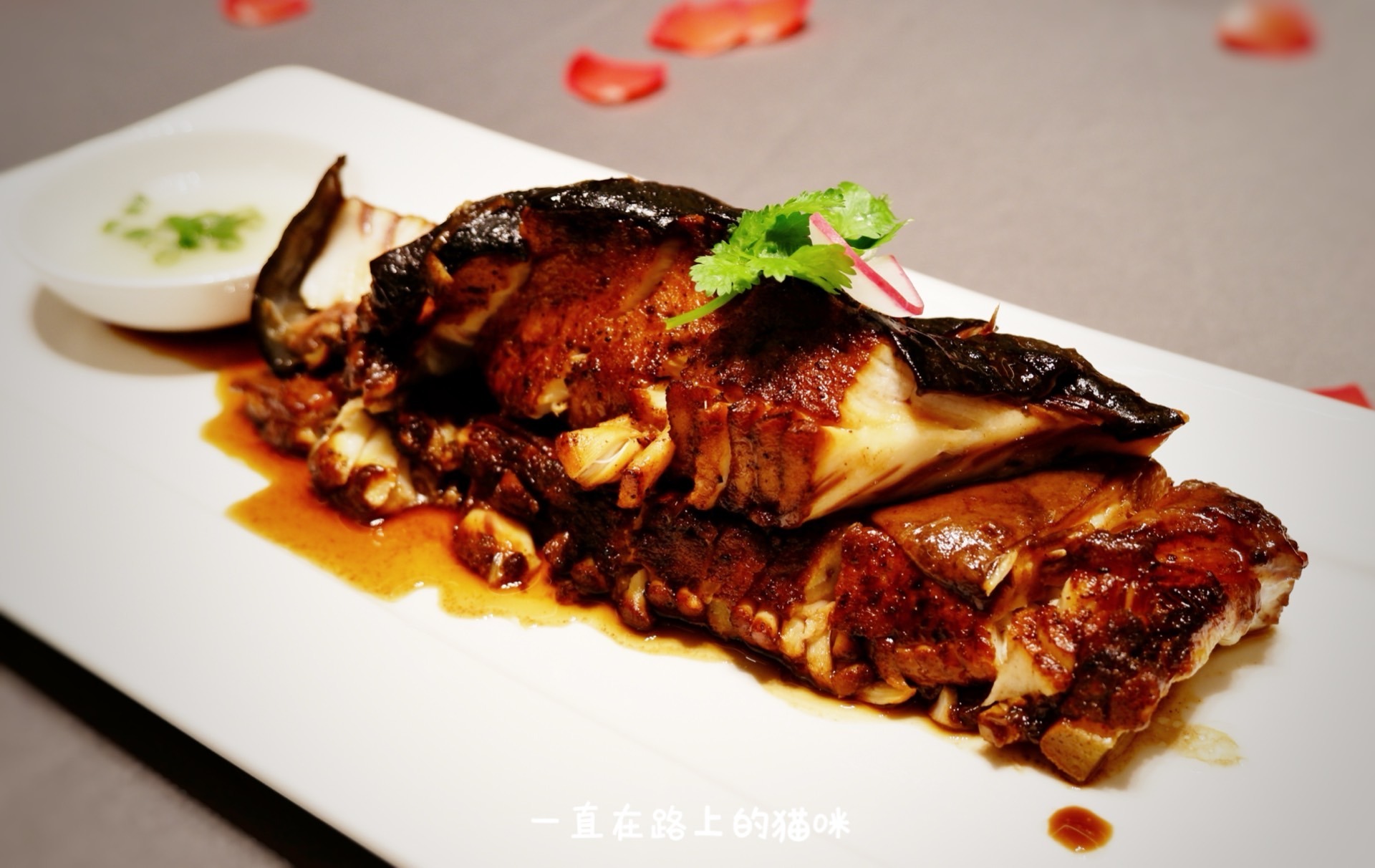 沙茶煮大斑节虾:即位菜。闽南的特色沙茶和海鲜的完美碰撞。大斑节虾肉质紧实鲜嫩,浸泡在沙茶汤里很是入味。搭配烘烤过的面包又有点西餐的仪式感,还别说面包蘸沙茶汤还真是好吃。