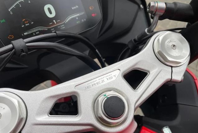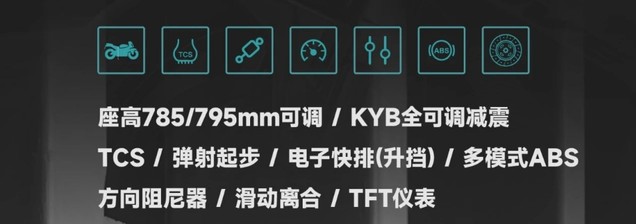 配置方面新款350RR 赫雷兹也带来了非常大的提升,高配车型搭载了由博世提供双通道ABS系统以及全功能TC系统,具备弯道ABS、牵引力控制系统等功能。前后刹车分别采用Brembo对向四活塞和Brembo双活塞卡钳,前倒立式减震和中置后减震也均支持预载回弹阻尼调节功能。