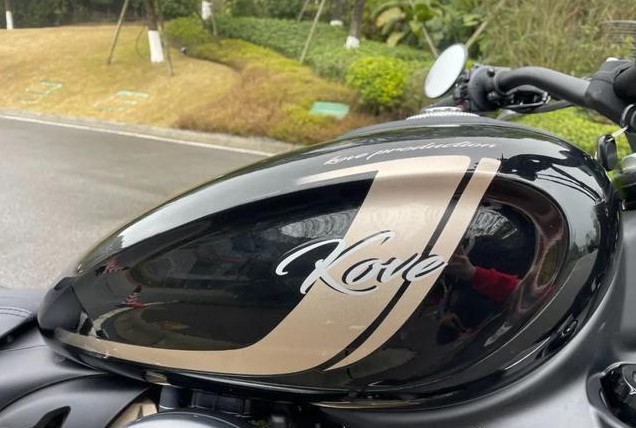 此外,圆润的水滴型油箱正中还带有一条不锈钢拉丝装饰条,在复古与现代上形成设计的碰撞。并且625V还采用了双油箱的设计,这也实现了20.5升的超大油箱容积,更是能够提供400KG的出色续航能力。动力上625V搭载来自隆鑫最新的650V型双缸引擎,实际排量578cc,最大功率45kW/8500rpm,最大扭矩60Nm/5500rpm,最大马力62匹。并且它具备经济、运动两种动力模式,标配滑动离合器。