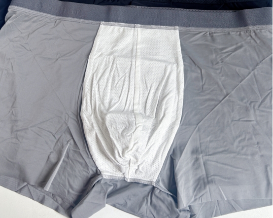 猫人是资历较久的国内品牌,在贴身衣物领域积累了不少经验,不过部分产品设计风格偏成熟。这款男士内裤采用无痕高弹力腰带,囊袋处做了三角区立体裁剪,整体为一片式无侧缝设计,裤脚也采用无痕热贴工艺,细节处理贴合穿着需求。从穿着体验来看,它的舒适度表现较好,但受一片式裁剪与薄款冰丝材质的影响,产品易出现破损、撕裂情况,洗涤和穿着时需避免大力拉扯,使用寿命相对较短。