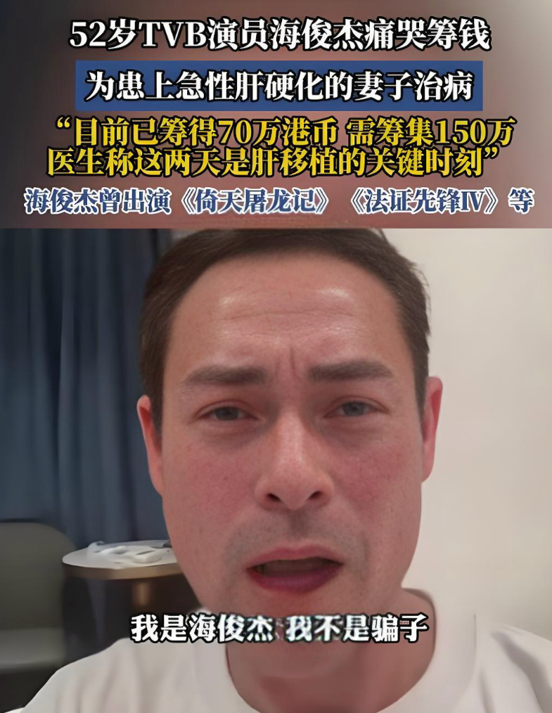 11月8日,一向低调的海俊杰在社交平台发布了一段痛哭求助的视频,镜头前的他双眼红肿、声音沙哑,透露急需筹集约150万港币的巨额手术及后续治疗费用。视频中,这位52岁的演员反复强调“我不是骗子”,其绝望与无助令观者动容。