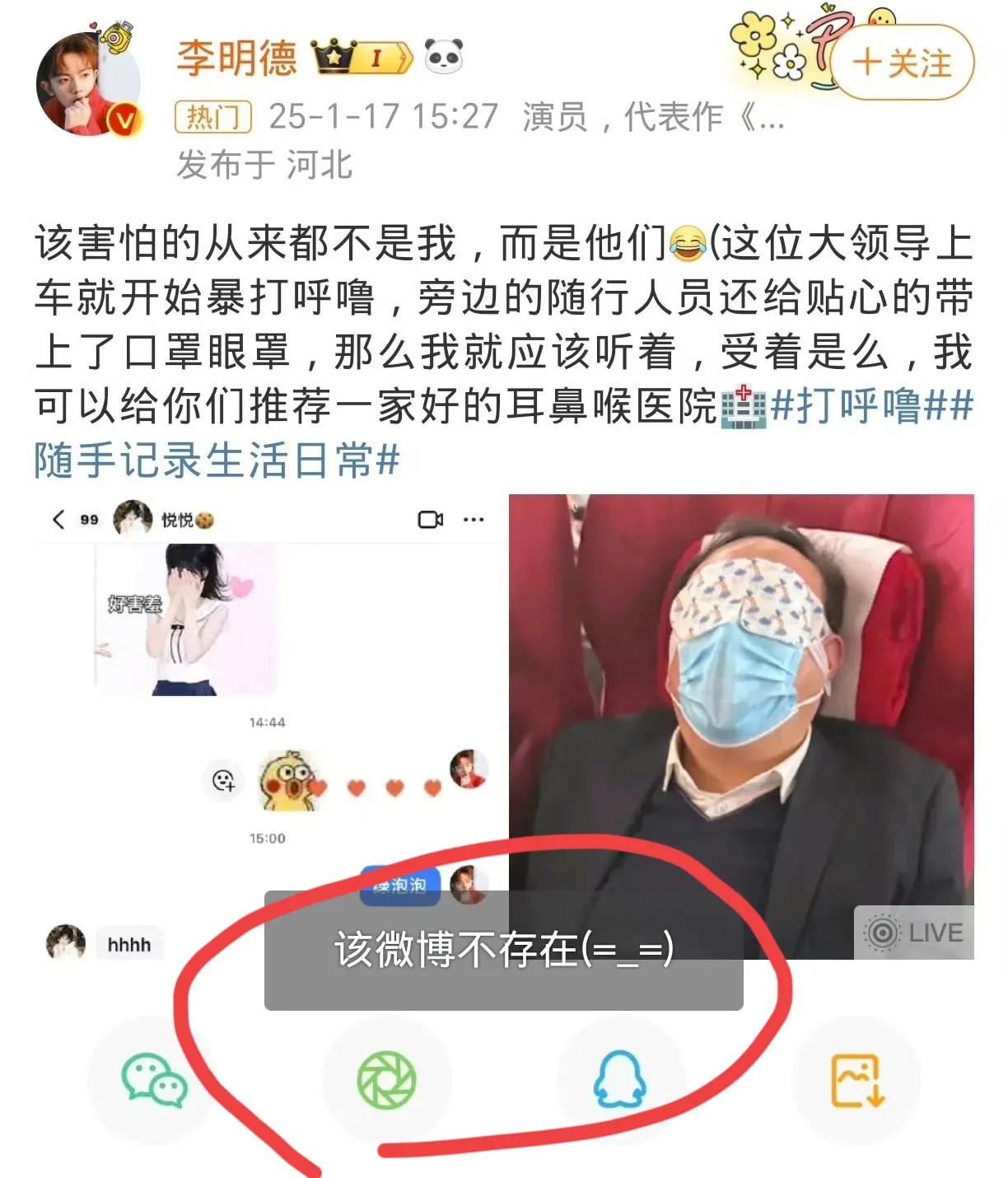 李明德随后发布了一条微博,内容提到领导刚一上车便开始打鼾,这让他感到非常烦恼。他还附上了领导在车上睡觉的照片,并展示了工作人员为领导贴心地戴上眼罩的情景。
