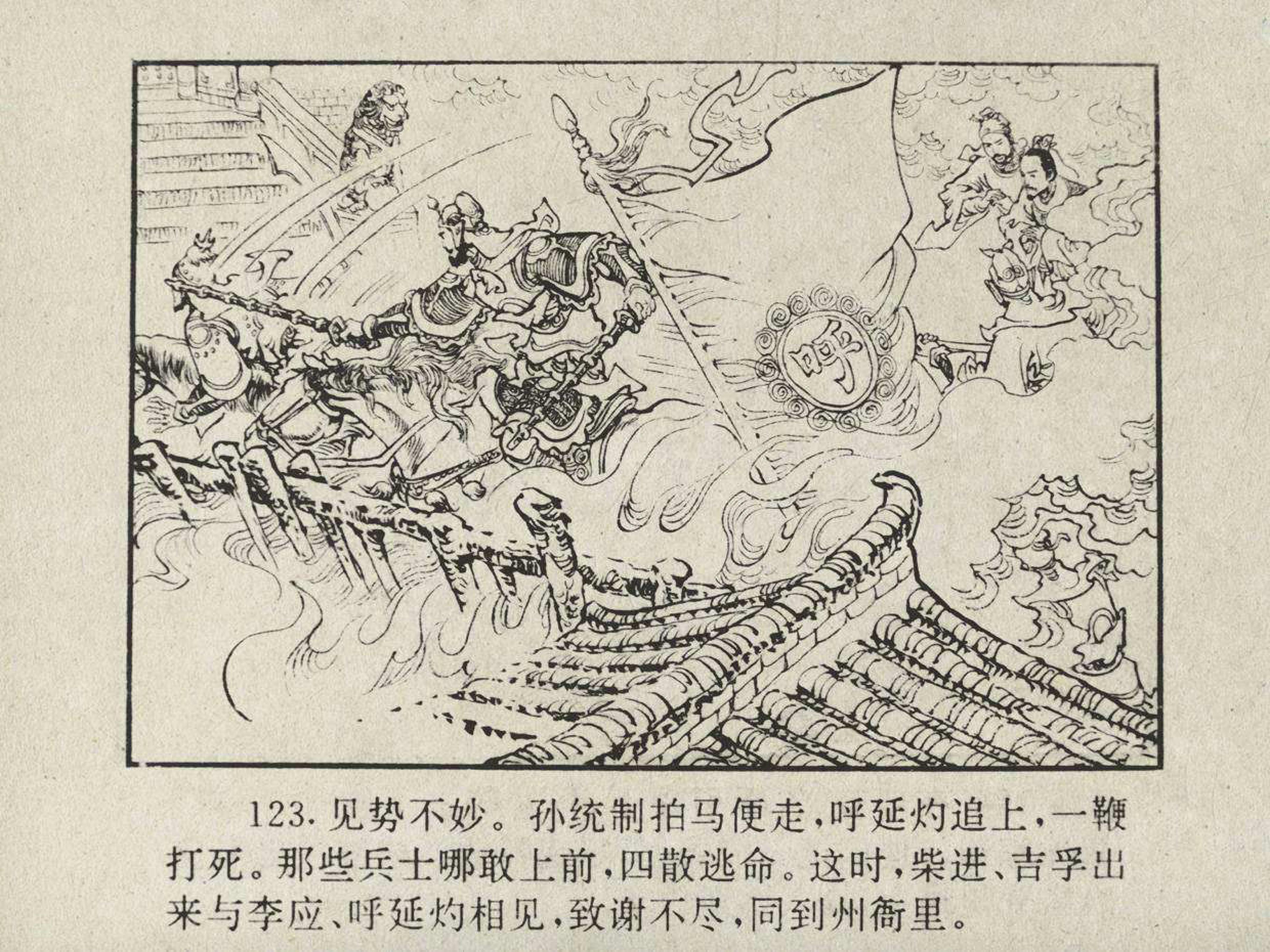 本册主要内容是呼延灼因注豹投敌,失守黄河渡口,只好投奔饮马川。路上又从金兵手里救下朱仝,一同上山。饮马川好汉日多,李应便率众攻打沧州,杀了太守,救出柴进。