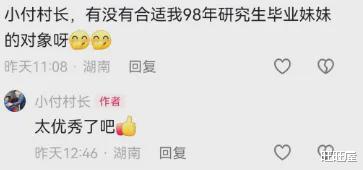 有98年研究生毕业的妹妹问,有没有适合自己的对象,村长没回复有没有,只是赞美小女孩太优秀了。