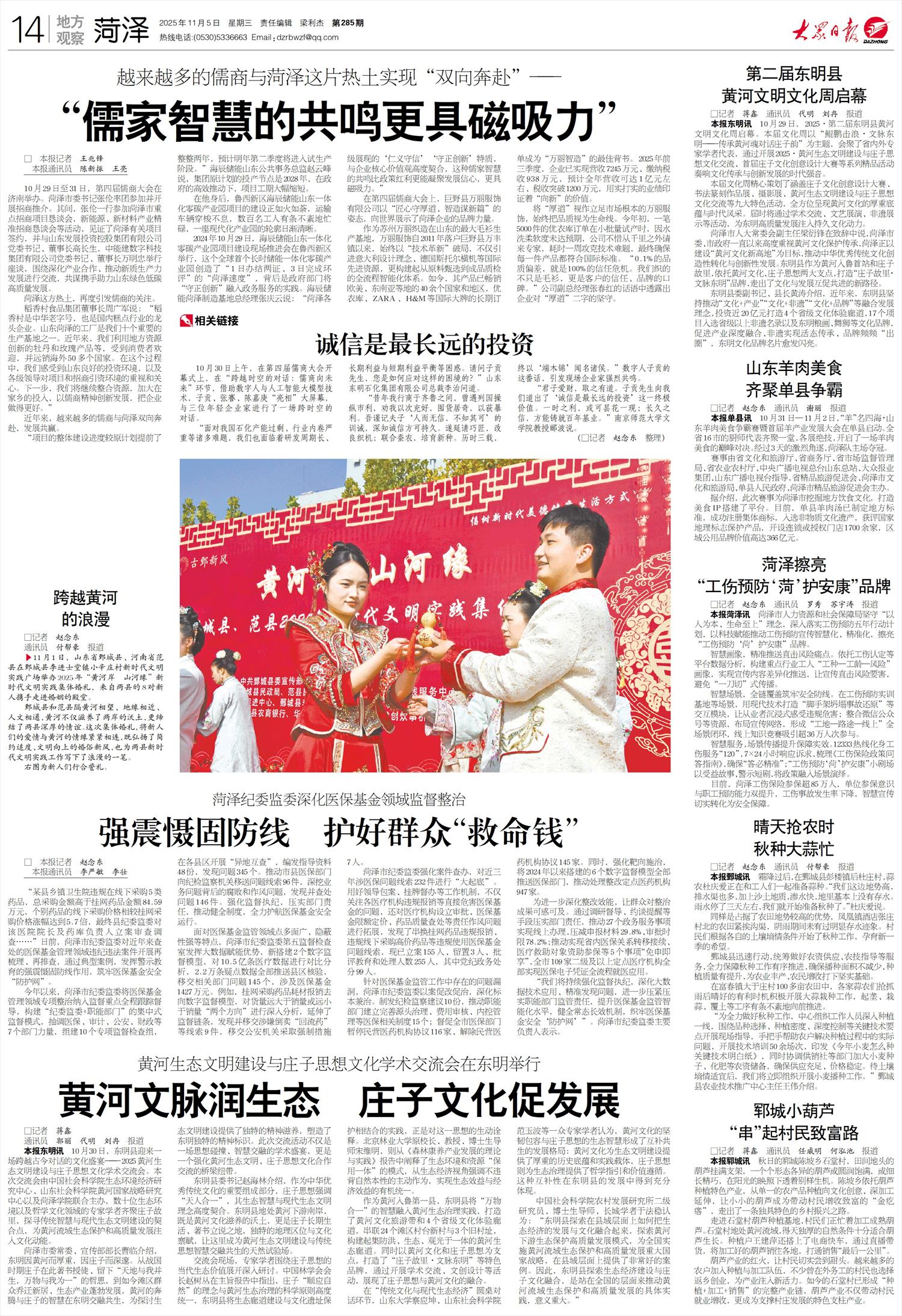 □ 本报记者 王兆锋 本报通讯员 陈新振 王亮 10月29日至31日,第四届儒商大会在济南举办。菏泽市委书记张伦率团参加并开展招商推介。其间,张伦一行参加菏泽市重点招商项目恳谈会,新能源、新材料产业精准招商恳谈会等活动,见证了菏泽有关项目签约,并与山东发展投资控股集团有限公司党委书记、董事长高长生,中能建数字科技集团有限公司党委书记、董事长万明忠举行座谈,围绕深化产业合作、推动新质生产力发展进行交流,共谋携手助力山东绿色低碳高质量发展。 菏泽这方热土,再度引发儒商的关注。 稻香村食品集团董事长周广军说:“稻香村是中华老字号,也是国内糕点行业的龙头企业。山东菏泽的工厂是我们十个重要的生产基地之一。近年来,我们利用地方资源创新的牡丹和玫瑰产品等,受到消费者欢迎,并远销海外50多个国家。在这个过程中,我们感受到山东良好的投资环境,以及各级领导对项目和招商引资环境的重视和关心。下一步,我们将继续整合资源,加大在家乡的投入,以儒商精神创新发展,把企业做得更好。” 近年来,越来越多的儒商与菏泽双向奔赴,发展共赢。 “项目的整体建设进度较原计划提前了整整两年,预计明年第二季度将进入试生产阶段。”海辰储能山东公共事务总监赵云峰说,集团原计划的投产节点是2028年,在政府的高效推动下,项目工期大幅缩短。 在他身后,鲁西新区海辰储能山东一体化零碳产业园项目的建设正如火如荼,运输车辆穿梭不息,数百名工人有条不紊地忙碌,一座现代化产业园的轮廓日渐清晰。 2024年10月29日,海辰储能山东一体化零碳产业园项目建设现场推进会在鲁西新区举行,这个全球首个长时储能一体化零碳产业园创造了“1日办结两证、3日完成环评”的“菏泽速度”,背后是政府部门将“守正创新”融入政务服务的实践。海辰储能菏泽制造基地总经理张庆云说:“菏泽各级展现的‘仁义守信’‘守正创新’特质,与企业核心价值观高度契合,这种儒家智慧的共鸣比政策红利更能凝聚发展信心,更具磁吸力。” 在第四届儒商大会上,巨野县万丽服饰有限公司以“匠心守厚道、智造谋新篇”的姿态,向世界展示了菏泽企业的品牌力量。 作为苏州万丽织造在山东的最大毛衫生产基地,万丽服饰自2011年落户巨野县万丰镇以来,始终以“技术革新”破局,不仅引进意大利设计理念、德国斯托尔横机等国际先进资源,更构建起从原料甄选到成品质检的全流程智能化体系。如今,其产品已畅销欧美、东南亚等地的40余个国家和地区,优衣库、ZARA、H&M等国际大牌的长期订单成为“万丽智造”的最佳背书。2025年前三季度,企业已实现营收7245万元、缴纳税收938万元,预计全年营收可达1亿元左右、税收突破1200万元,用实打实的业绩印证着“向新”的价值。 将“厚道”视作立足市场根本的万丽服饰,始终把品质视为生命线。今年初,一笔5000件的优衣库订单在小批量试产时,因水洗柔软度未达预期,公司不惜从千里之外请来专家,耗时一周攻克技术难题,最终确保每一件产品都符合国际标准。“0.1%的品质偏差,就是100%的信任危机。我们织的不只是毛衫,更是客户的信任、品牌的口碑。”公司副总经理张春红的话语中透露出企业对“厚道”二字的坚守。