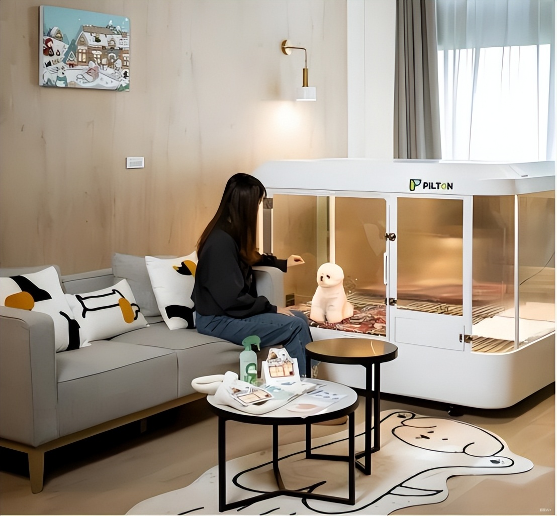 再说住的,有家叫宠尔顿的公司,在2024年拿到了投资,专门造高科技的宠物窝,叫宠物智能舱,里面有摄像头,能换气,能自动调温度,还能自己清理。