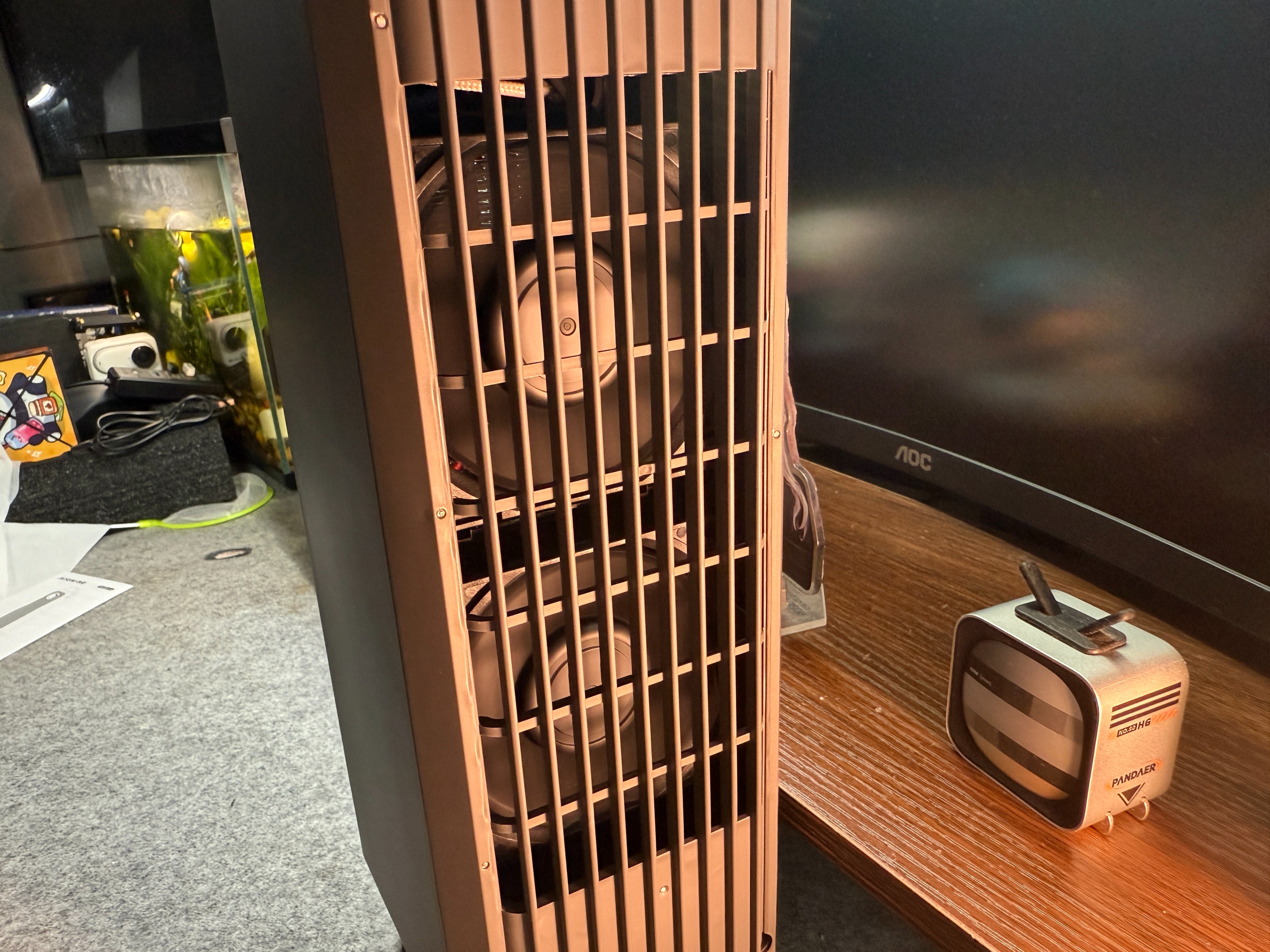 最惊艳的是它的颜值!深灰色金属机身搭配流线型底座,像极了某大牌的极简风音箱。顶部皮质提手手感超棒,6档旋钮调节时还有“咔嗒”的机械声,放在办公桌上瞬间提升格调。同事来家里做客都问:“这新买的艺术摆件哪买的?”