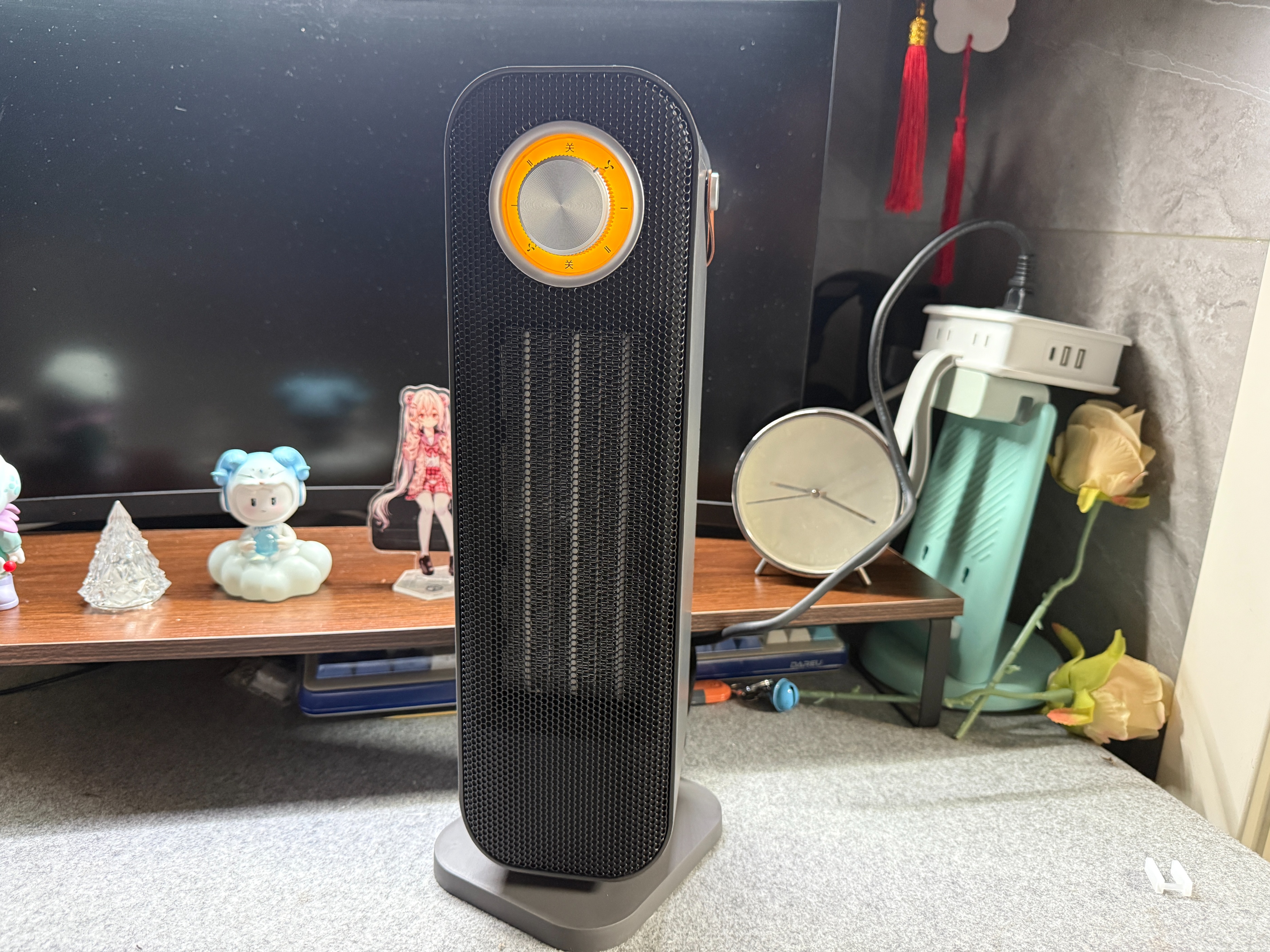 更绝的是90°广角摇头功能,以前用暖风机只能对着脸吹,时间久了鼻子干得像撒哈拉。现在开着它追剧,暖风能均匀覆盖整个沙发区,连脚丫子都暖乎乎的。有次在书房加班开着它,连放在角落的绿植叶子都跟着“抖腿”,这加热范围简直绝了!