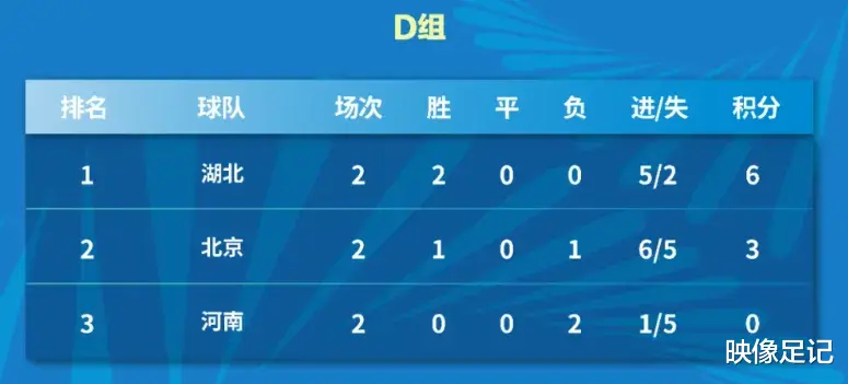 小组赛第三轮9月8日小组赛第三轮,河南队则是轮空。小组赛三轮战罢,河南队2连败,进1球失5球,排名D组第三,未能出线。