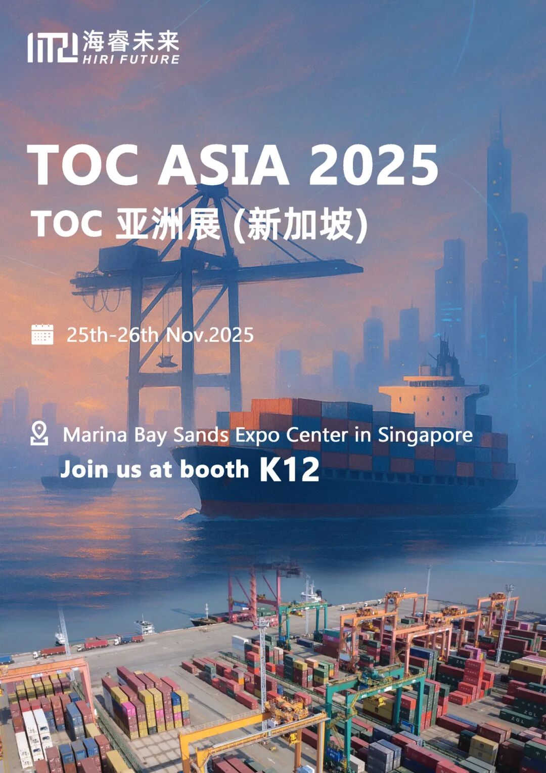We will participate in TOC Asia 2025 fromNovember 25 to 26 at Marina Bay Sands in Singapore. Discover more with us on technical insights, cooperation opportunities at our boothK12, and collectively describe a new blueprint for the development of smart ports.