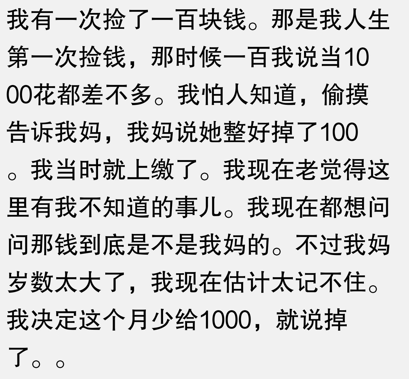 19. 捡钱一百,我妈说掉了,现在还想问,那钱是不是我妈的?