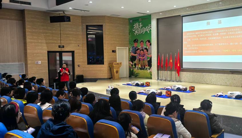 理论环节,魏文强重点阐释心肺复苏术(CPR)操作标准、儿童海姆立克急救法要领,详解抽搐、溺水、动物咬伤、止血包扎等常见状况的应急处置流程,纠正常见误区,并普及急救法律保障知识,消除师生“不敢救”的顾虑。