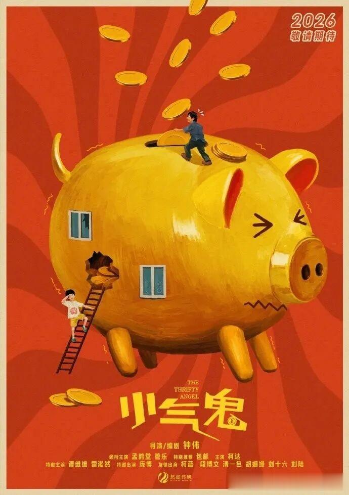 从官宣海报可以获悉,这部影片预计在2026年上映。为了突出“小气”和“纯抠”,海报通过一个大型储钱罐,淋漓尽致地展现了剧中主角的世界。