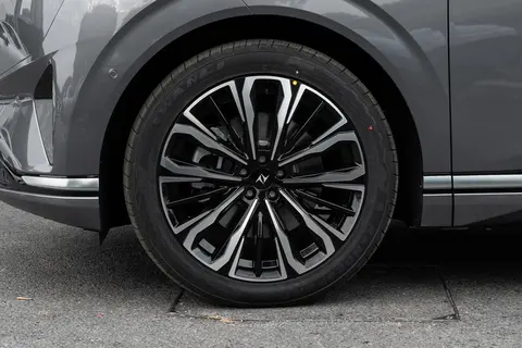 车身侧面线条流畅,没有多余装饰,悬浮式车顶搭配 21 英寸高强度铝合金轮辋,既显大气又略带运动气息。新增的仙踪绿和苍穹灰两种车漆颜色很有质感,尤其是仙踪绿,在阳光下能呈现出细腻的光泽,比常见的黑白灰配色更具辨识度。车尾的贯穿式尾灯与车头设计相呼应,晶体切面的造型在夜晚点亮后十分精致,高位刹车灯和后保扩散器的加入,让整车尾部造型更加协调。