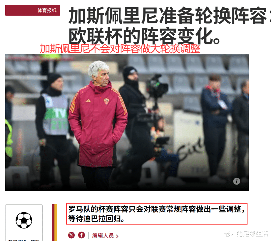 对于欧联的比赛,加斯佩里尼的阵容调整不大,跟常规联赛阵容相比只有两三处的首发调整,由于大名单里没有巴尔丹齐,弗格森可能会取代他伪9的位置,头号射手苏莱肯定会首发上场。
