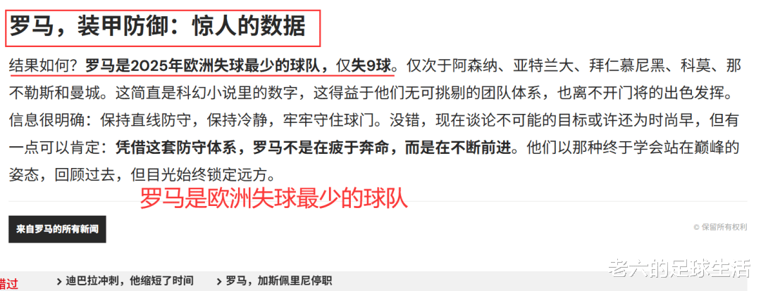 由于他们的出色表现现在的罗马在整个欧洲是失球最少的球队,加上欧联的比赛他们也仅丢9球。