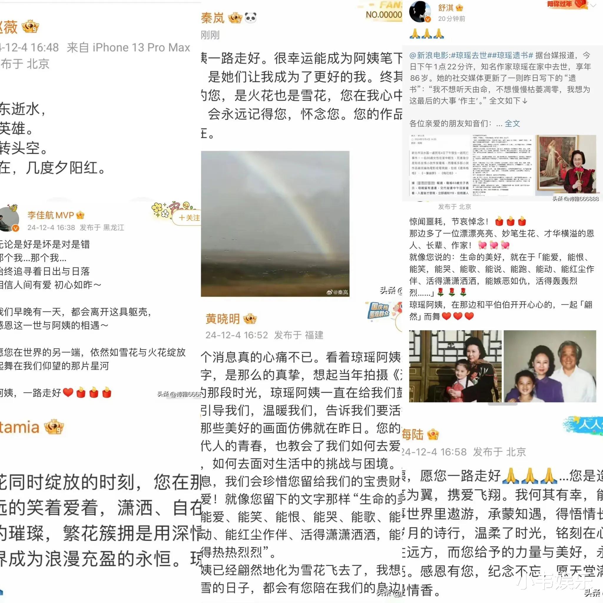 看来儿子儿媳打算一切从简,也是尊重琼瑶阿姨的遗愿,她走的很安然,在遗书中就提到过不希望大家因为她的离去而感到悲伤,不要哭,更不要难过!