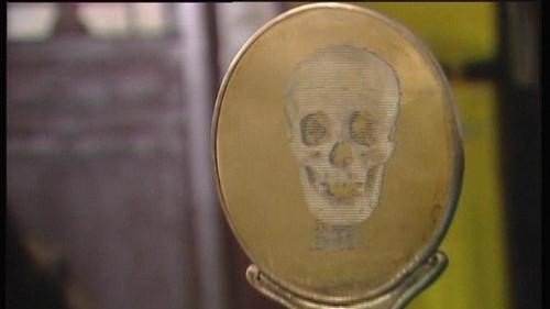 那道士叹道:“你这病非药可医!我有个宝贝与你,你天天看时,此命可保矣。”说毕,从褡裢中取出一面镜子来——两面皆可照人,镜把上面錾着“风月宝鉴”四字——递与贾瑞道:“这物出自太虚幻境空灵殿上,警幻仙子所制,专治邪思妄动之症,有济世保生之功。所以带他到世上,单与那些聪明俊杰、风雅王孙等看照。千万不可照正面,只照他的背面,要紧,要紧!三日后吾来收取,管叫你好了。”说毕,佯常而去。