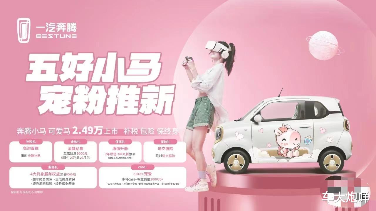 基于产品定位和售价信息,奔腾小马在国内市场的竞争对手主要包括五菱宏光MINIEV、吉利熊猫mini、奇瑞QQ冰淇淋等同级别车型。而根据官方最新公布的数据,奔腾小马上市两个月订单超过了2万台,至于可爱马车型的到来能否对奔腾小马整体销量起到积极促进作用,笔者也将持续保持关注。