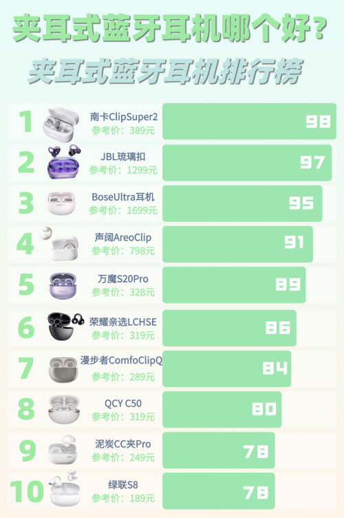 二、抢先看:2026年夹耳式蓝牙耳机排行榜