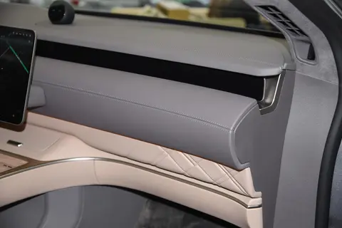 车内的材质与细节处处体现匠心:榫卯木纹饰板采用故宫同款工艺,枫木纹理随光线流转如水墨画卷。产自北美的枫影真木视觉感受和触摸手感都很棒,配合全舱Nappa真皮包裹,营造出奢华氛围。传统式的体面细节无处不在:“龙井茶韵”香氛混合明前茶香与竹叶清气,能在重要谈判前自动释放。音响系统的连钱纹让人想起祖宅雕花,是刻在血液里的亲近感。