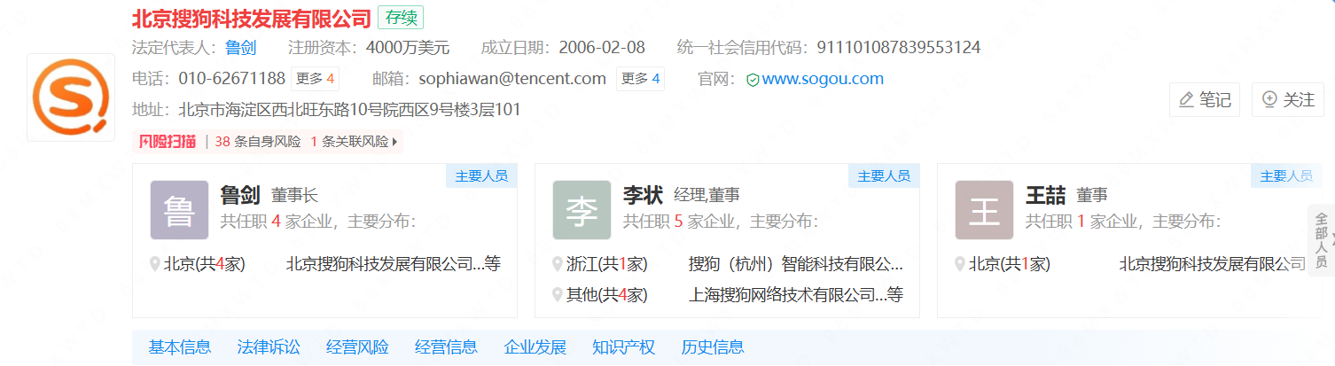 搜狗母公司工商信息更新:叶骏退出董事长岗位,鲁剑同时接任法定代表人