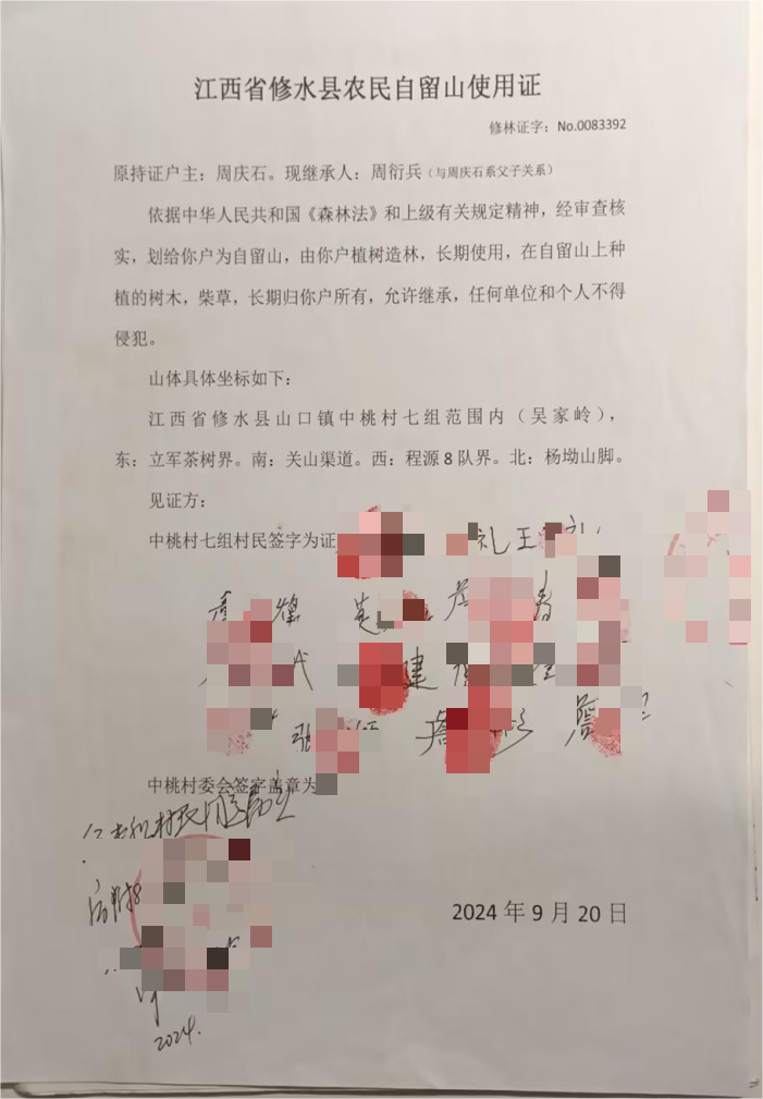 “红本本攥了几十年,山场管护一天没断过,补偿款给了别人,连自己的合法权属都像‘消失’了一样,找遍部门也没个说法!” 江西省修水县农民周衍兵手中的两本《农民自留山使用证》,原署名为父亲周庆石。父亲去世后,周衍兵依法继承了该权证及对应的山场使用权与林木权益,这本由行政部门核发、承载着合法继承关系的权属凭证,本该是权益保障的 “定心丸”,却在山场处置补偿时沦为 “一纸空文”。背后交织的历史划转疑点、权属衔接空白、补偿分配失衡与部门推诿,共同构成了这起山权证 “失效” 的离奇迷局。
